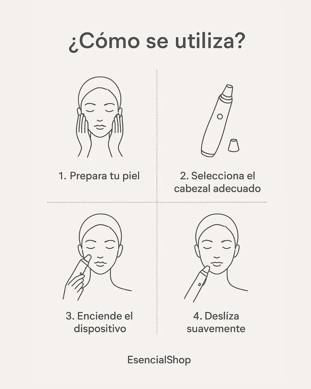 Este dispositivo combina tecnología y practicidad: con sus cinco cabezales intercambiables se adapta a cada necesidad de tu piel, brindándote una rutina de cuidado completa y resultados visibles desde los primeros días de uso.